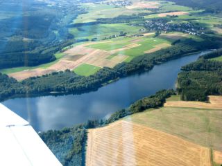 | Ruine Schloss Oberstein | Rundflug über die Steinbachtalsperre | Die Steinbachtalsperre ist der Trinwasserspeicher der Stadt Idar-Oberstein |