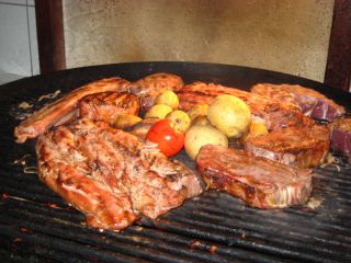 | Die Spezialität unserer Stadt: Spießbraten vom offenen Buchhenholzfeuer |